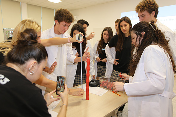 Avogadro Sayısı’nın (6.022 x 10²³) keşfini anmak için dünya genelinde kutlanan “Mol Günü”, Kimya Bölümümüz liderliğinde 11. sınıf öğrencilerimizin katılımıyla yarışmalar eşliğinde kutlandı. Bu yıl 11. sınıf öğrencilerimiz, dünyanın farklı bölgelerinden öğrencilerin katıldığı uluslararası Molympics yarışmasında yer aldılar. Yarışma boyunca beş farklı etkinlikte hem eğlendiler hem de kinestetik zekâlarını kullanarak günlük yaşam aktivitelerinden elde ettikleri verileri mol birimine dönüştürmeyi öğrendiler.