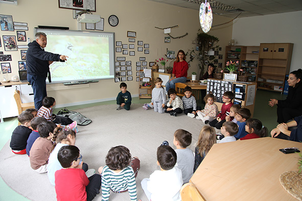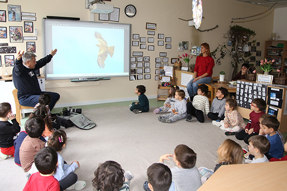 Anaokulu öğrencilerimiz, “Sanat, duygu ve düşüncelerimizi yaratıcı bir şekilde ifade etme yollarından biridir” ana fikri doğrultusunda yürütülen sorgulama sürecinde, sanatın farklı biçimlerini üç ayrı atölye çalışmasıyla keşfetme fırsatı buldu. Atölye çalışmalarının sonuncusu, okulumuz Genel Müdürü Sayın Okan Sezer’in fotoğrafçılık sanatı üzerine gerçekleştirdiği sunumla tamamlandı. Fotoğraf makinesinin çalışma prensiplerinden doğa fotoğrafçılığının estetik unsurlarına uzanan sunumda, görsel anlatımın sanat içindeki yeri ele alındı. Sanatla iç içe ilerleyen bu öğrenme süreci, öğrencilerimizin estetik farkındalıklarını desteklerken yaratıcılıklarını ve kendilerini ifade etme becerilerini güçlendirdi. Sayın Okan Sezer’e, değerli deneyimlerini bizlerle paylaştığı ve sanatın duygu ve düşünceleri yaratıcı biçimlerde ifade etme gücünü çocuklarımızla buluşturduğu için teşekkür ederiz.