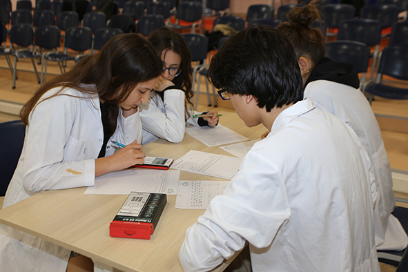 “Mole Day,” celebrated worldwide to commemorate the discovery of Avogadro’s Number (6.022 x 10²³), was marked at our school with exciting competitions organized under the leadership of our Chemistry Department and with the participation of our 11th-grade students. This year, our students took part in the international Molympics competition, where participants from around the world came together. Throughout the event, they had fun while engaging in five different activities, using their kinesthetic intelligence to convert data from everyday life into mole units.