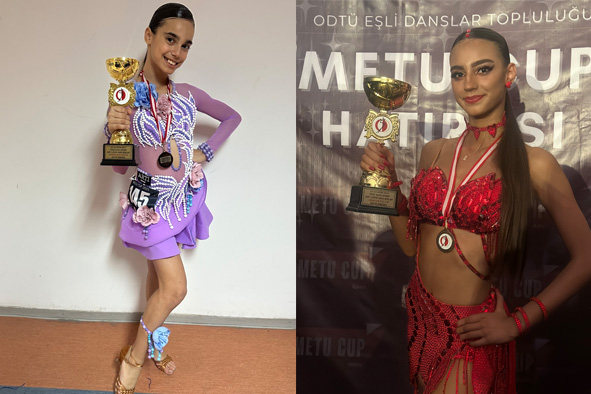 Our students Azra and Sahra İnamlık delivered outstanding performances at the Interclub Ranking Competitions and National Ranking Competitions in Latin dance, organized by the Turkish Dance Sports Federation at METU in Ankara. Azra İnamlık won 1st place in the Youth Interclub Ranking Competitions (B category) and 2nd place in the National Ranking Competitions Youth category, earning two trophies. Sahra İnamlık successfully completed the competition with a 2nd place finish in the Stars 1C category of the Interclub Ranking Competitions. We wholeheartedly congratulate both of our students on their exceptional achievements and wish them continued success.