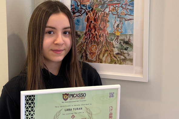 Our high school student Lara Turan has been awarded the “Gold Artist” title at the Picasso Art Contest – Creative Brilliance 2026, an international art competition held in India. Competing in the 15–19 age category, Lara stood out among 1,400 artworks from 58 countries, earning this prestigious recognition. We congratulate our student on this remarkable achievement in her artistic journey and wish her continued success.
