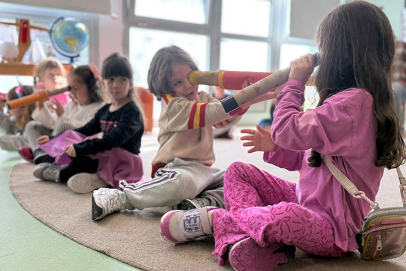 As part of Space Week activities, our 7th grade students had an enjoyable and educational sharing session with our ELC 2nd and 3rd graders about telescopes. During the event, our 7th graders presented information about the structure and uses of telescopes to their younger peers. They then examined both the telescope models they had designed themselves and a real telescope, exploring how these fascinating instruments work. Our ELC students discovered the function of telescopes with great curiosity and excitement, reinforcing their learning through hands-on activities at the end of the session. We would like to thank our 7th grade students for sharing their enthusiasm for space and inspiring their younger friends through this meaningful and enjoyable activity.