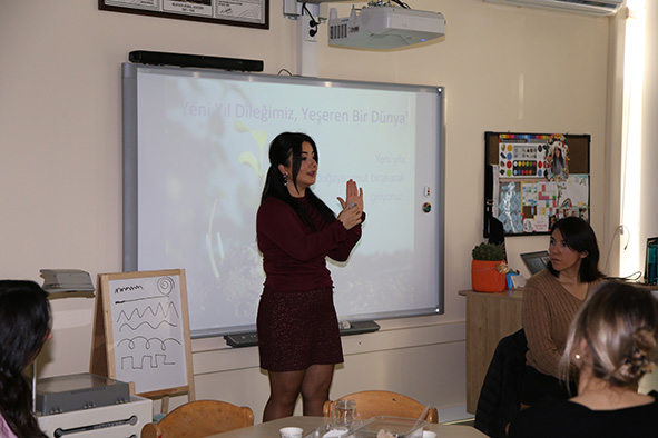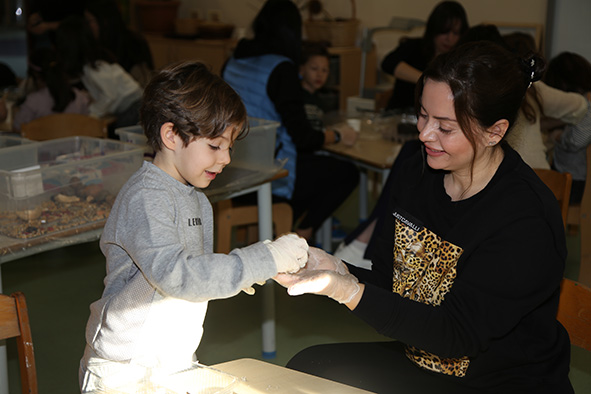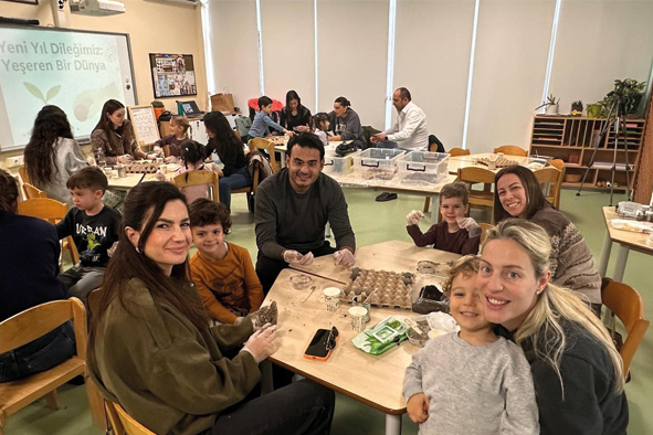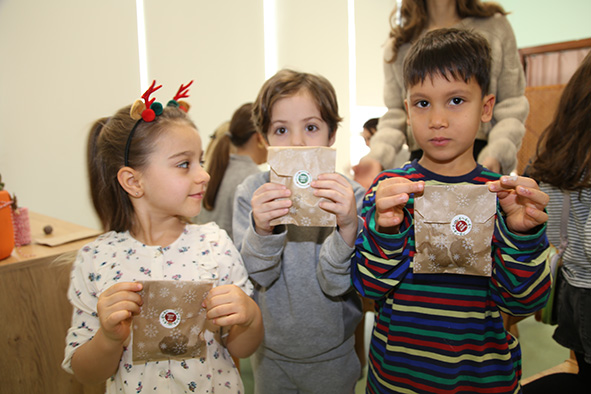 Following the olive production work carried out by ELC students as part of the Piazza Project, the inquiry process initiated based on olive pits was completed with a Parent-Participated Art Activity using seeds that had been collected at the school over a period of time. During the activity, students worked together with their parents to transform the seeds they had previously gathered into small seed balls using soil and clay. The prepared seed balls were decorated with kraft paper in line with the New Year theme, highlighting the message that they would bring hope to nature when planted in the soil in the new year. This enjoyable activity supported children’s development of environmental awareness while also offering a meaningful learning experience that strengthened family involvement.