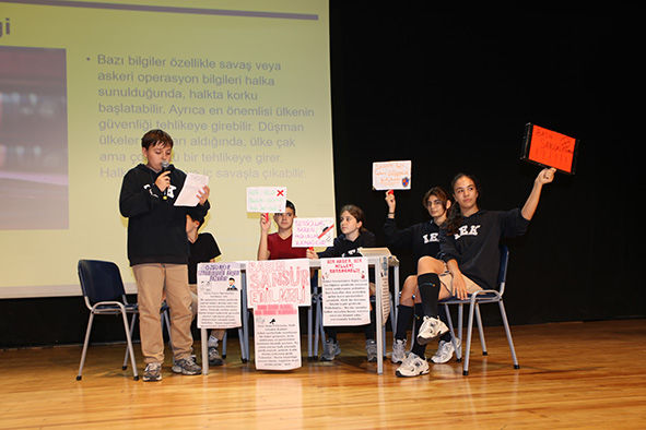 7. sınıf öğrencilerimiz, “Basın özgür mü olmalı, sansür mü edilmeli?” sorusuna cevap aradıkları münazara etkinliğinde düşüncelerini coşkuyla dile getirdiler. Bir grup, “Basın özgür olmalı; çünkü halkın gerçeği bilmeye hakkı var!” derken, diğer grup, “Sınırsız özgürlük bazen zarara yol açar, sansür toplumu korur.” görüşünü savundu.Sözler kararlılıkla söylendi, fikirler saygıyla dinlendi. Etkinlik sonunda herkes, özgürlüğün ve sorumluluğun bir denge içinde olması gerektiğini fark etti. Münazara etkinliğimiz öğrencilerimizin düşünen, sorgulayan ve ifade eden bireyler olarak yetiştiğinin en güzel göstergesi oldu.