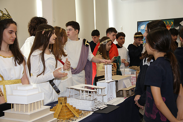 9. sınıf öğrencilerimiz , Sosyal Bilimler derslerinde öğrendikleri ilk çağ uygarlıklarının birbirleri ile kültürel etkileşimlerini tarihsel ve coğrafi bakış açısından ele alarak gözlem ve araştırma yöntemlerini deneyimlemek ve tarih bilincini geliştirmek amacıyla gerçekleştirdikleri Efes Antik Kenti gezi-gözlem çalışması sonrasında MYP kriterlerine uygun olarak yaptıkları araştırmaları ile şekillendirdikleri, Antik Çağ dönemini yansıtan eserler ile sunumların yer aldığı canlı müze ve sergimizi gerçekleştirdi. Öğrencilerimiz deneyimlerini, döneme ait eserlerin maketleri ve dönemin önemli kişilerini kostümleri ile canlandırarak 6. ve 10. sınıf öğrencileri ile paylaştı. Ziyaretçilerimiz dönem koşullarını birçok yönüyle öğrenme ve keşif fırsatı buldular.