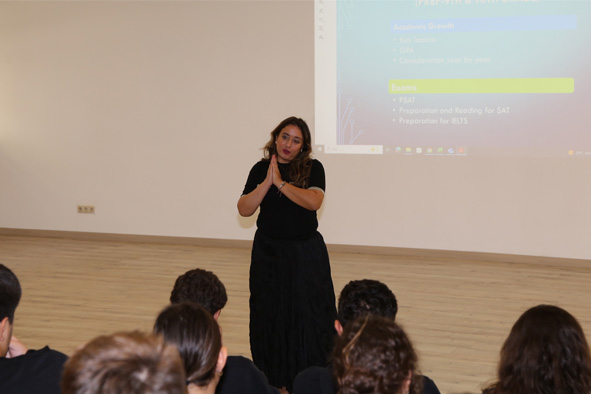 Okulumuzun Yurt Dışı Eğitim Danışmanları tarafından, 10. sınıf öğrencilerimize yönelik bilgilendirici bir sunum gerçekleştirdi. Sunumda, yurt dışındaki üniversitelere başvuru sürecinde öğrencilerin hedef belirlerken dikkat etmeleri gereken noktalar aktarıldı. Ayrıca, farklı ülkelerdeki üniversitelere başvuru süreçleri hakkında detaylı bilgiler paylaşıldı. Bu sayede öğrencilerimiz, yurt dışı eğitim planlarını yaparken hem genel başvuru süreci hem de ülkelere özgü gereklilikler konusunda önemli bir bakış açısı kazandı.