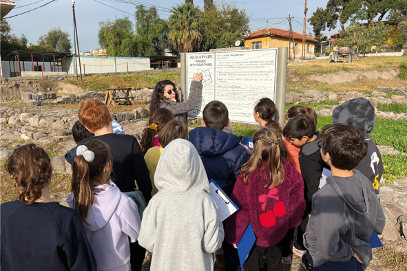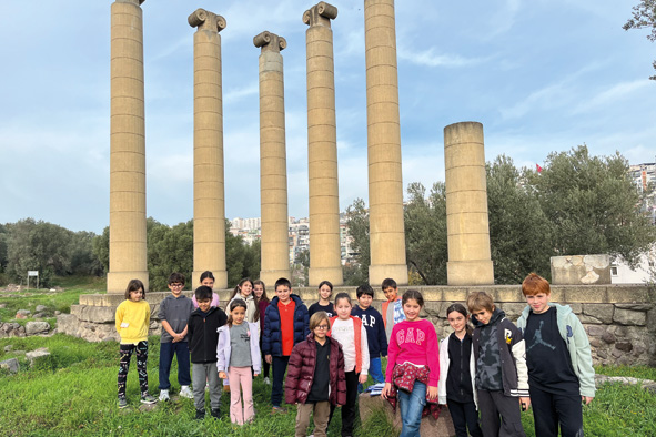 3. sınıflar olarak "Bulunduğumuz Mekan ve Zaman" ünitemizde, doğal ve insani faktörlerin toplulukların yaşamını nasıl şekillendirdiğini öğrenirken şehrimizdeki Bayraklı Smyrna Antik Kenti’ni ziyaret ettik. Gezimiz sırasında geçmişte insanların nasıl yaşadığını, evlerini ve pazar yerlerini nasıl düzenlediklerini, şehir planlarını doğal koşullara göre nasıl şekillendirdiklerini gözlemledik. Gezimiz boyunca bizlere eşlik eden arkeolog Senem Hanım, Smyrna’nın tarih boyunca geçirdiği değişimleri ve insanların bu değişime nasıl uyum sağladığını anlatarak bizlere önemli bilgiler aktardı. Tarihle iç içe gerçekleştirdiğimiz bu gezi, hem eski uygarlıklara dair bilgimizi artırdı hem de coğrafi koşullar ile insan yaşamı arasındaki ilişkiyi daha derinlemesine anlamamıza yardımcı oldu. Bu süreçte araştıran-sorgulayan, merak eden ve bağlantı kuran öğrenenler olarak önemli çıkarımlar yaptık.