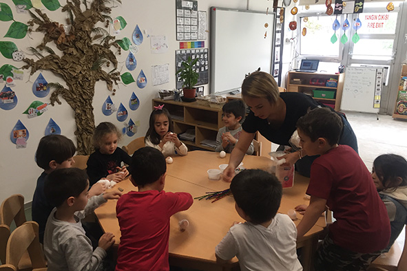 ELC 3/B sınıfı velilerimizden Deniz Karabağ İşin, veli katılımlı etkinlikler çerçevesinde anaokulumuza misafir oldu. Easter Haftası nedeni ile öğrencilerimizle yumurta boyama ve süsleme yapıp; yumurtaların içine çim tohumları koyarak çim adamlar oluşturdular. Kendisine bu keyifli etkinlik için teşekkür ederiz.