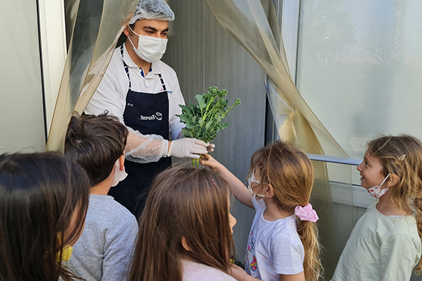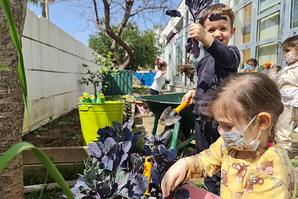 ELC öğrencilerimiz her yıl anaokulunun arka bahçesinde sebze yetiştirir ve bakımını yaparlar. Bu kış toprak panellerine brokoli, kırmızı ve beyaz lahana, kıvırcık, marul, pırasa ve kereviz dikmişlerdi. Düzenli olarak büyümelerini gözlemledikleri ürünleri bugün toplayarak ilk hasat heyecanını yaşadılar. Tüm ELC öğrencilerimiz topraktan sofraya sebzelerin nasıl değişim gösterdiğini, geliştiğini takip ettiler, düzenli olarak ürünlerini suladılar, toprağı kabarttılar. Baharın gelmesi ile birlikte ektiklerini toplamak ve yemek için hazırlamaksa heyecan vericiydi. Topladıkları sebzeleri el arabasıyla büyük yemekhaneye taşıyarak okulumuzun aşçısına teslim ettiler. Öğle yemeklerinde yetiştirdikleri sebzeleri afiyetle yediler.