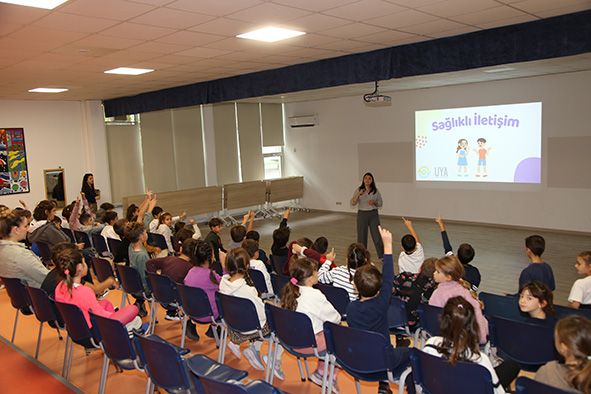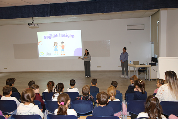 “Kim Olduğumuz” ünitesi kapsamında 2. sınıf öğrencilerimiz, Psikolog İrem Yaşar ve Banu Geboloğlu’nun gerçekleştirdiği “Sağlıklı İletişimin Önemi” konulu etkinliğe katıldılar. Etkinlikte konuklarımız, iletişimde etkin dinlemenin, empati kurmanın ve saygılı bir dil kullanmanın önemini vurguladı. Öğrencilerimiz, “Gürültü Oyunu” ve “Kulaktan Kulağa” gibi eğlenceli etkinlikler aracılığıyla öğrendiklerini pekiştirme fırsatı buldular. Günün sonunda öğrencilerimiz, sağlıklı iletişimin arkadaşlık ilişkilerini güçlendirdiğini fark ederek etkinlikten keyifli ve farkındalık dolu bir deneyimle ayrıldılar.
