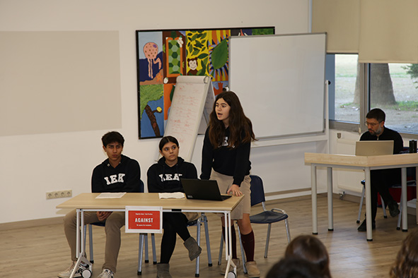 As part of their English lesson activities, our Grade 8 students researched current issues related to Human Rights Day and developed strong arguments on two prominent themes in today’s global agenda. Working in teams, they had the opportunity to present and debate these arguments. Throughout the event, students demonstrated impressive critical thinking skills as well as effective communication in English. The jury members congratulated all participants for their high motivation and respectful attitude. The program concluded with a productive learning experience that further enhanced students’ awareness and understanding of human rights.