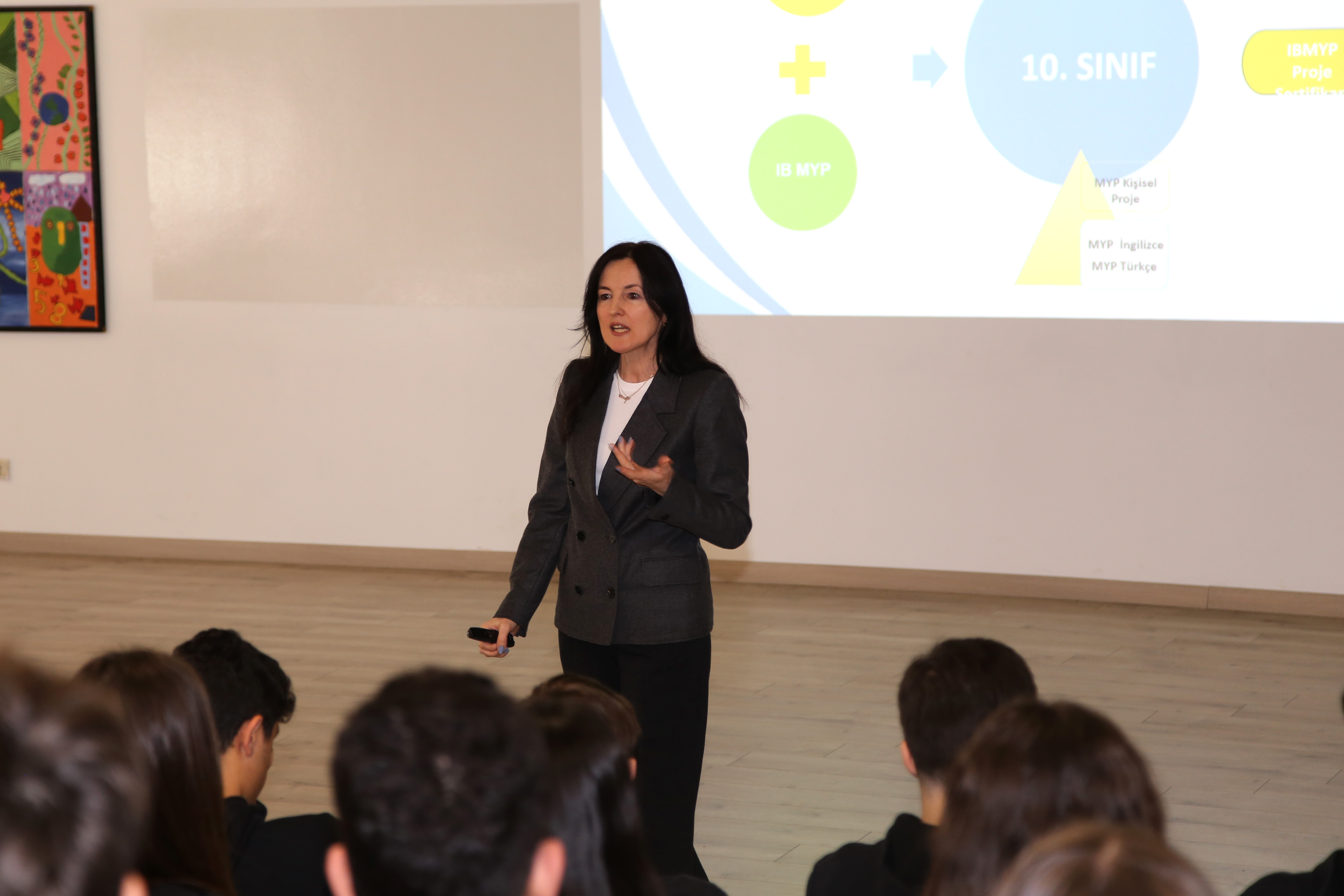 Grade 10 students attended a presentation entitled “Introduction to the IBDP Programme”, delivered by the Academic Coordinator. The purpose of the presentation was to inform and guide students about the structure, procedures, expectations, and requirements of the IB Diploma Programme, supporting them in making informed academic decisions for their future studies.