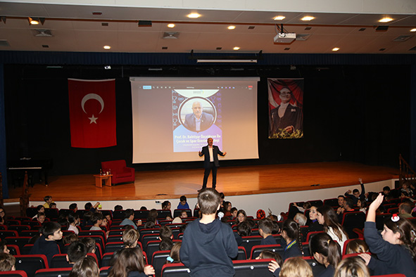 We were delighted to host Prof. Dr. Bahtiyar Özçaldıran at our school, who has trained numerous distinguished coaches through his more than 40 years of work in the Department of Coaching Education. Meeting with our primary and middle school students in a talk titled “Sports and Children,” Prof. Dr. Özçaldıran addressed the fundamental elements of maintaining a healthy mind and body, while also sharing examples from the training processes of Türkiye’s leading athletes and discussing the key requirements of becoming a successful athlete. This valuable talk contributed to our students developing a more informed perspective on sports and further strengthened our school’s vision of supporting children’s physical, mental, and social development through a holistic approach.