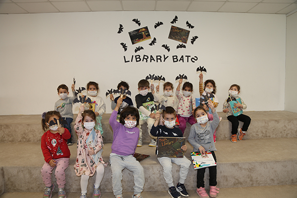 To celebrate “Library Week” with various activities, our students read the book entitled “Yarasalar Kütüphanede” and learned how libraries are structured and what they involve except books. They got information about different types of books through an activity called “Library Science” and learned where each book is placed in a library. They drew posters about their favorite books, got dressed as the heroes of those books, and introduced the books to their friends. Then, they came up with different stories using their imagination.