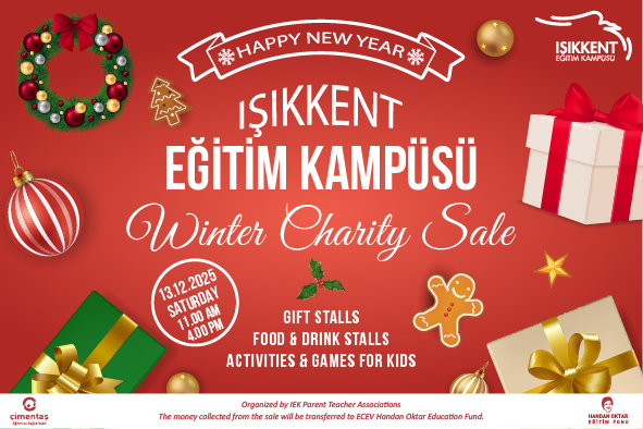 We invite everyone to our Traditional Winter Charity Sale, which will take place on Saturday, December 13th on our campus! 🗓️ Date: Saturday, December 13, 2025 ⏰ Time: 11:00 – 16:00 📍 Location: Işıkkent School At this delightful event, you can complete your holiday shopping while contributing to a student’s education! Don’t forget to mark your calendars — and feel free to invite your friends!