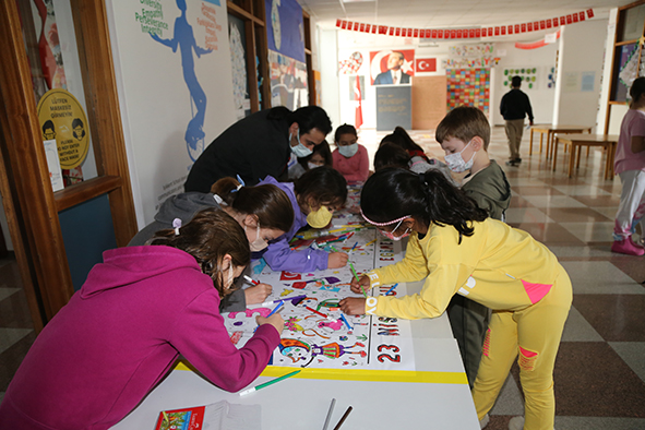 23 Nisan coşkumuz hafta boyunca tüm öğrencilerimizin görevli öğretmenlerimiz liderliğinde katıldıkları bahçe oyunları, karaoke, boyama ve origami gibi çeşitli etkinliklerle de devam etti. Kısa bir pandemi molası verdiğimiz bayram birlikteliğimiz bu yıl hepimiz için biraz daha özel. Şimdiden herkese coşku dolu bir bayram diliyoruz…