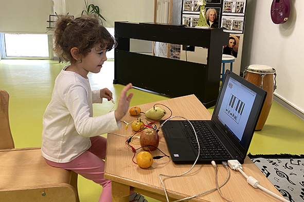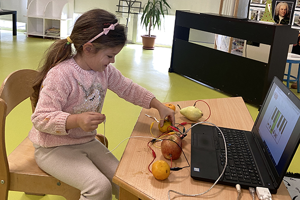ELC 3 öğrencilerimiz PYP ünitemiz bilim ile bağlantılı olarak, herkesin günlük kullandığı nesneleri bilgisayar programlarına bağlanmasına imkân sağlayan elektronik bir icat aracı veya oyuncağı olan Makey elektronik müzik düzeneği kurarak iletken maddelerden doğaçlama müzik çalışmaları yaptılar. Öğrendiğimiz ‘’do’’ dizisini piyano sesleri çıkaran bir program ile meyvelerle deneyimlediler. İletken ve yalıtkan maddeler nelerdir sorgulamasında bulundular. Doğaçlama müzik yaparak eğlenceli etkinlikler gerçekleştirdiler.