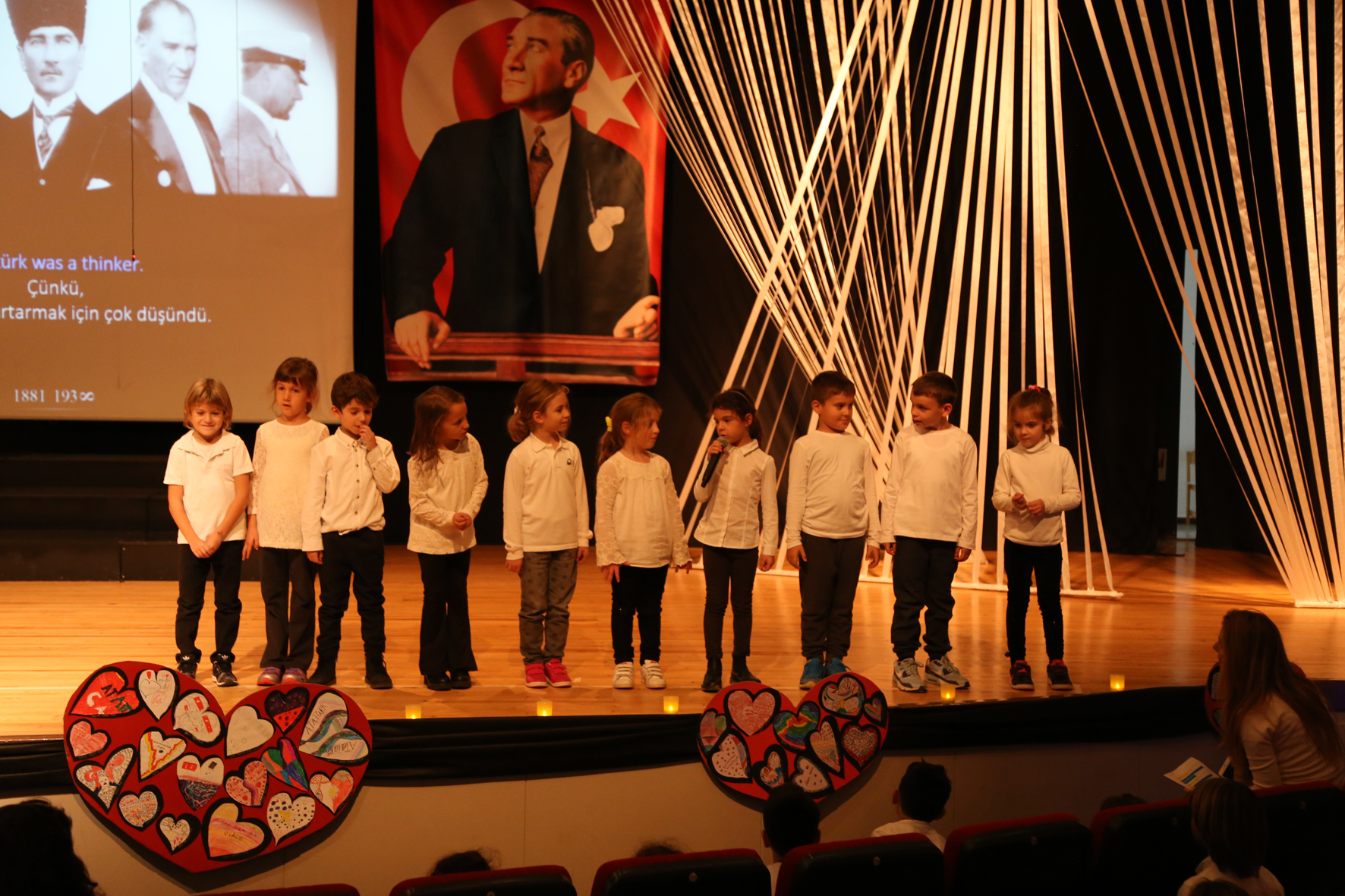 İlkokul öğrencilerimiz kendi hazırladıkları 10 Kasım assembly programı ile Ulu Önder Atatürk'ü şiirler, şarkılar ve danslarla andılar. Törenin kapanış şarkısında bu kalp seni unutur mu diye Atalarına seslenerek, tüm izleyicileri duygulandırdılar.