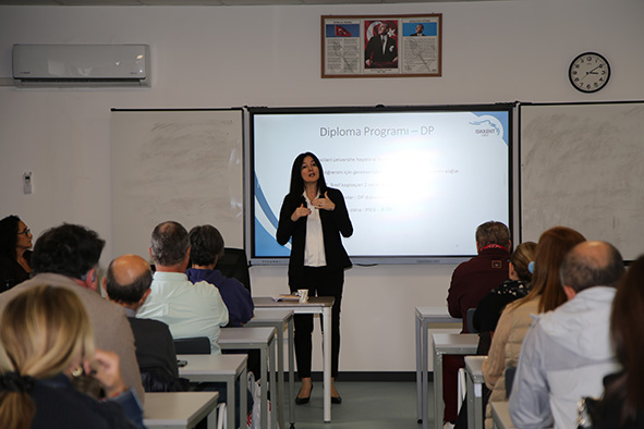 Lise Müdürümüz ve (5-12. Sınıf) Akademik Koordinatörümüz tarafından 10. sınıf velilerimize yönelik “DP Programına Giriş” başlıklı bir sunum gerçekleştirildi. Sunumda, DP (Diploma Programı) hakkında kapsamlı bilgiler paylaşılırken, programın doğası, öğrencilerden beklenen akademik disiplin ve kabul şartları detaylı olarak ele alındı. Veliler, DP sürecine dair merak ettikleri soruları yönelterek programın öğrencilere sunduğu fırsatlar hakkında daha fazla bilgi edinme şansı buldular.