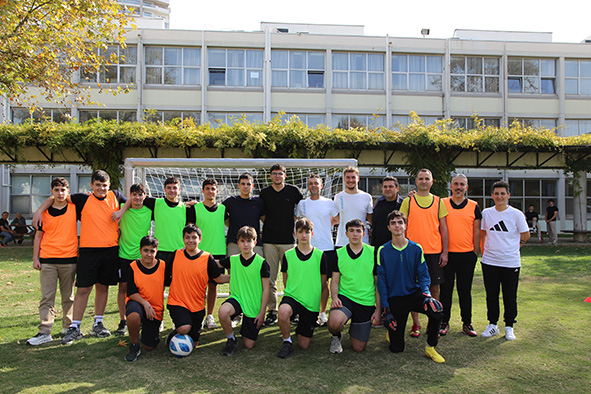 Öğretmenler Haftası kutlamaları kapsamında, öğrencilerimiz ve öğretmenlerimiz heyecan dolu bir futbol maçında sahaya çıktı. Kıyasıya mücadeleye sahne olan karşılaşmada futbolun yanı sıra dostluk, dayanışma ve eğlenceli anlar ön plandaydı. Maç boyunca iki takım da fair play ruhunu elden bırakmadan mücadele etti. Tribünlerde arkadaşlarının ve meslektaşlarının coşkulu destekleriyle güç bulan oyuncular, hem yeteneklerini sergiledi hem de bu özel haftayı sporun birleştirici gücüyle kutladı.