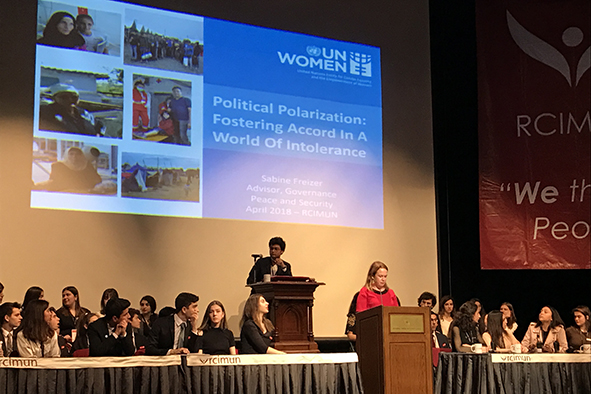 Bu yıl 12.si düzenlenen RCIMUN, Robert Kolej Uluslararası Model Birleşmiş Milletler Konferansı, 3-7 Nisan tarihlerinde İstanbul’da gerçekleşti. Political Polarization: Fostering Accord in a World of Intolerance (Politik Kutuplaşma; Hoşgörüsüzlük Dünyasında Düzen Sağlama) ana temalı konferansta IMUN öğrencileri okulumuzu beş ayrı görevlendirme ile temsil etti. Eren Tunçer (Büyükelçi), Altar Gür, Arda Neke, Barışta Can Harmancı, Denizcan Orhan ve Melike Taner’den oluşan delegasyon Irak’ı ve Emir Pars Yıldırım (Büyükelçi), Ceyda Talia Alkaç, Doğa Kahvecioğlu, Selen Erbek’ten oluşan delegasyon Umman’ı temsil ederek komitelerinde gündem maddelerine çözüm aradı. Bu görevler dışında Poyraz Yapalı ve Selahattin Özbüker Tarihi Güvenlik Konseyi’nde Jamaika delegeleri olarak 1979 yılı krizlerinden Rusya’nın Afganistan işgali ile İran Devrimi ve ABD Elçilik Binası baskını konularını ele aldılar ve dünya tarihinin akışını değiştirdiler. Diplomat görevlerine ek olarak, İnci Beliz Berik Uluslararası Adalet Mahkemesi’nde yargıç, Elif Güngör ise Konferans Basın Kurulu’nda gazeteci ve çizer olarak etkin rol aldı.