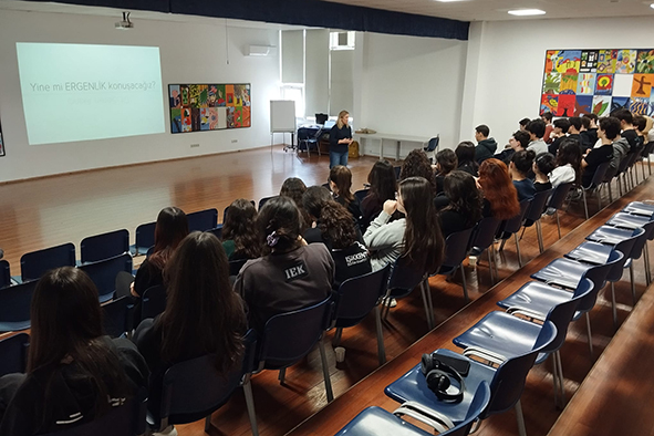Okulumuz yatılı öğrencilerine yönelik olarak, klinik spor psikoloğu Dr. Seren Akıncı tarafından "Ergenlik Dönemi Özellikleri ve Olumlu Davranış Geliştirme" konulu interaktif bir seminer gerçekleştirildi. Etkinlik boyunca öğrencilerimiz, ergenlik döneminde yaşanan fizyolojik ve psikolojik değişimleri daha iyi anlamanın yanı sıra duygu ve davranış yönetimi, okul kurallarına uyum sağlama ve sorumluluk bilinci kazanma konularında önemli bilgiler edindiler. Öğrencilerimizin gelişimine katkı sağlayan bu değerli seminer için Dr. Seren Akıncı'ya teşekkür ederiz.